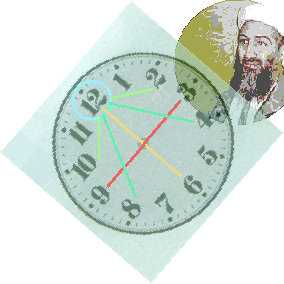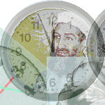Dans un calendrier de transit le mouvement de la rotation de 5 horloges planétaires se déroule horizontalement, si bien que naît une représentation linéaire de temps. P.ex., si on prenait pour Bush (de nov. 2002 à oct. 2003) seulement les conjonctions (BLEU) de JUPiter, on aurait une image trop sucent d'une expansion. Seulement en automne il faut compter avec de nouvelles restrictions (SATurne BLEU SOLeil). Mais, si on ajoute les oppositions (JAUNE) de NEPtune, l'image devient déjà plus exacte, et peut même indiquer des tromperies possibles, des partenaires douteux, et inconsistant. Ceci s’accentue encore en juillet 2003 par le carré SATurne ROUGE NEPtune. A ce moment là, on a reproché publiquement a Bush d’avoir dénaturé intentionnellement les raisons de guerre contre l'Irak. Si on laisserait l’ordinateur interpréter automatiquement les 21 transits de Bush avec les 32 maximums, on obtiendrait qu’une série embrouillée d’énonciations avec, certes, des indications correctes, mais noyées dans l’ensemble. ▲