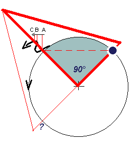 90° = Carré (ROUGE) : Ces tensions apparaissent, si une position de naissance se trouve en angle droit par rapport à une courbe planétaire. Pour trouver ces aspects de transit, vous placez le triangle sur l'angle droit au centre du cercle, et avec un coté sur une courbe planétaire. Il s'agit d'un carré, si l'autre coté coïncide avec une position natale. Exécutez la même opération de l’autre coté pour reconnaître éventuellement une tension. Sur une montre normale, ces situations correspondraient aux quarts d'heure. Des carrés indiquent des tendances à des situations bloquées ou au point mort. La résistance ou l’opposition à l'ambiance sociale semblent plus accentues, que pour l'opposition. Les oppositions permettent plus de débat et de résistance active (lutte). Les carrés avec JUPiter sont le moins problématiques; ▲ Voir une illustration/ colonne à droite [X•]?